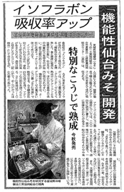 イソフラボン吸収率アップ 「機能性仙台味噌」開発