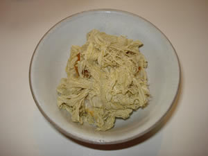 3.その後、適量のとろろこんぶを振り掛けます。とろろ昆布はいろいろとありますが、私はいつも「純とろ」というとろろ昆布を使っております。