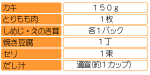 ②カキは塩水で振り洗いし、とり肉はそぎ切り。きのこは石づきを取って小房にわける。豆腐はやっこ、セリはザク切りにする。