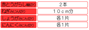⑥サラダ油大さじ1/2で赤材料を香りが立つまで炒める。緑材料を加えて煮立て、4、5を戻し入れ、強火で味をからめる。仕上げにこしょうを振る。