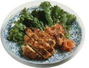 ⑤いただきやすく切り分けて器に盛り、ゴマを散らし、グリーンカールを添える。