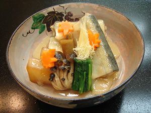 - ②野菜は一度下茹でして置き 秋刀魚と一緒に煮る。