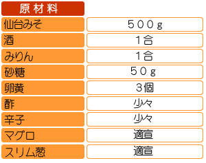 - ④鮪と葱を食べやすい大きさに切り 酢味噌で和える