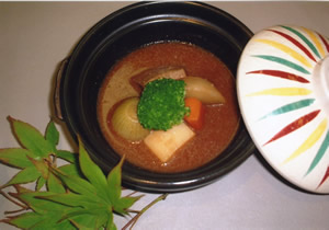 「仙台味噌と牛タンのシチュー」朝食には「具沢山根菜味噌汁」等、是非御賞味ください。