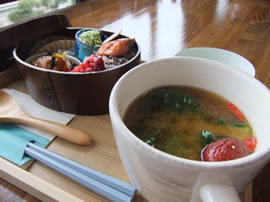 写真:スパイス味噌汁とほっこりわっぱ弁当[1,100円]
