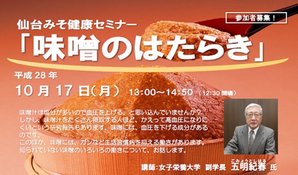 平成28年10月17日(月)仙台みそ健康セミナーを開催します。
