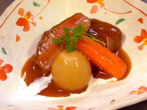 - ④玉葱、人参、じゃがいも等を一緒に煮込んでもよし。