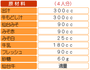 京都では和食料理の鉄人といわれている小島光永氏の愛弟子 調理長 多賀高雄をはじめとする調理人集団のお味を宮城の食材たっぷり取り入れた京会席風でご堪能いただけます。特に仙台味噌は伊達藩の藩政時代から注目の食材、こんなレシピでいかがでしょうか?