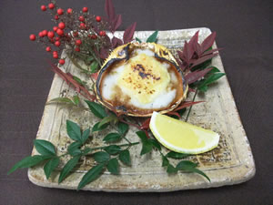 - ②蟹の甲羅に蟹のムキ身を入れ①の合わせ味噌を掛け、ネギ、とろろ、チーズをのせオーブンで焼く。