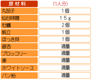 - ③ホワイトソースに味噌で味を調えたものをかけて、オーブンで焼きあげる。