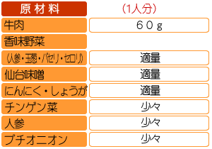 - ②香味野菜・にんにく・しょうが等と一緒に味噌味にして煮あげる