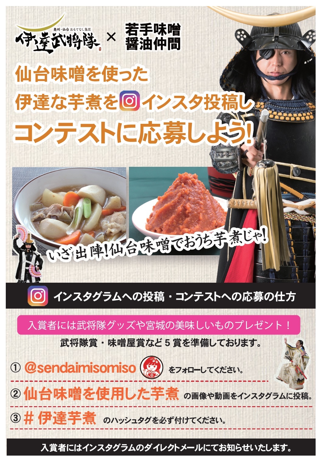 伊達武将隊×若手味噌醬油仲間コラボ 作って見て食べて楽しい!!Instagram投稿イベント 開催!