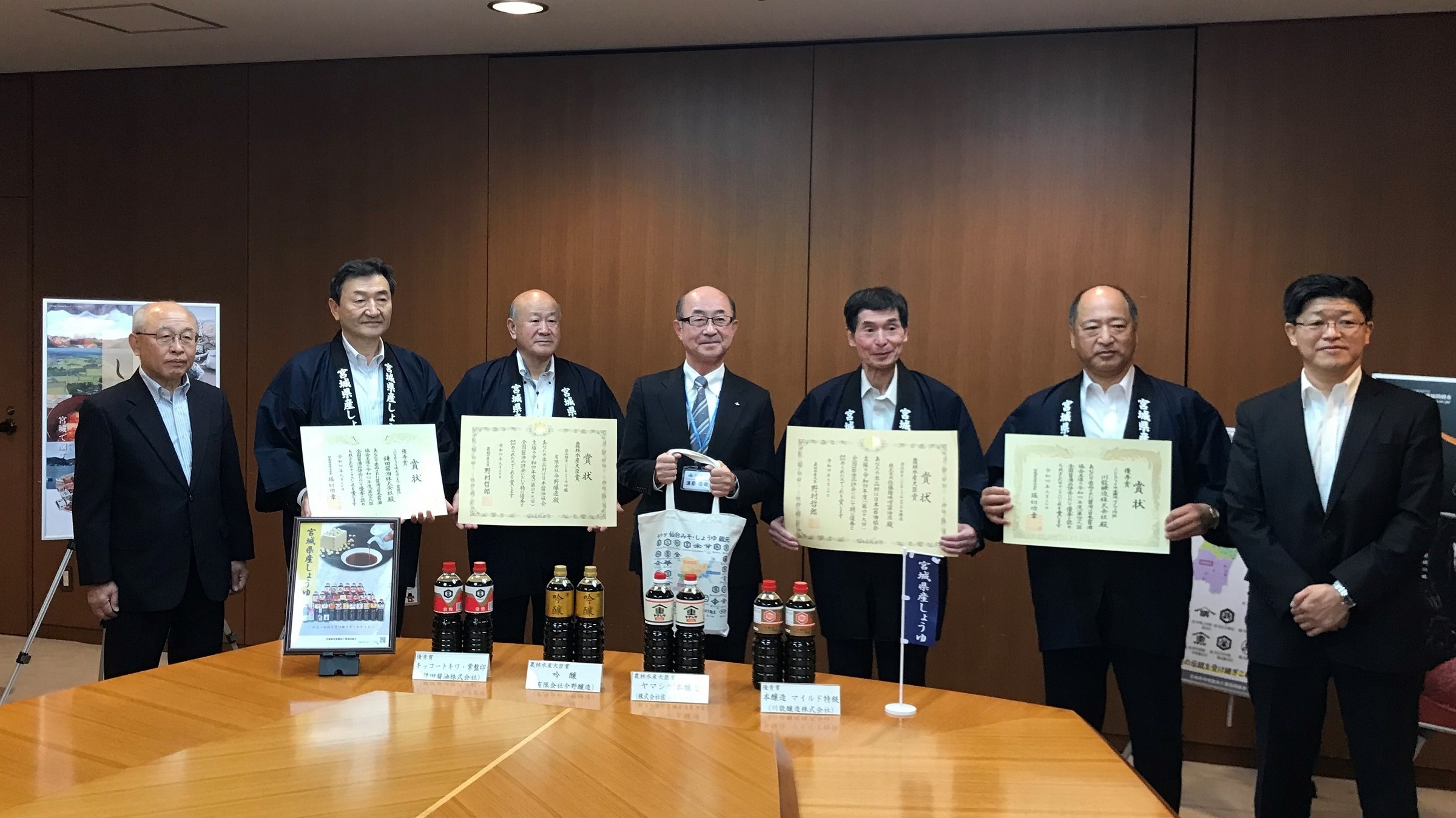 全国一の醤油を決める「第49回全国醤油品評会」(※1)において、最高賞となる農林水産大臣賞と優秀賞を受賞した県内4社の代表が、10月24日(月)に県庁を訪問し、遠藤副知事に受賞を報告いたしました。