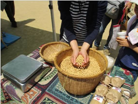 ・大豆重量あてクイズ(当たった方には大豆小袋プレゼント)
