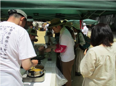 熱中症対策を兼ねてみそ汁を飲んでいただきながら、原料の大豆に直接触れてもらったり、宮城の蔵元のお話をしたり…。発酵に興味のある方も多く、たくさんの方に仙台みそを知って味わっていただくことが出来ました。