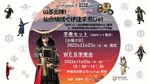 いざ出陣!仙台味噌で伊達芋煮じゃ!~伊達武将隊と秋の夜長のWEB芋煮会2022~